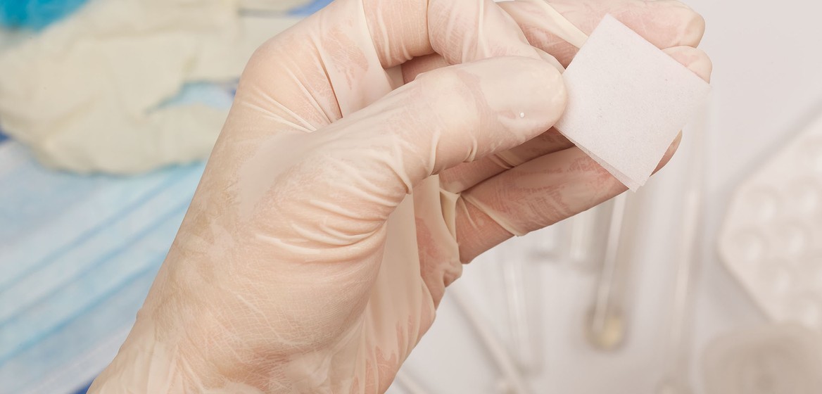 Важно строгое соблюдение технологии – нельзя пропускать ни один из этапов. Первый – выбор сырьевой основы, обычно это гипоаллергенный мягкий нетканый материал. Он должен быть прочным, стойким к разрывам и не раздражать кожу. Обычно применяются материалы на основе хлопка, вискозы, специальных волокон на синтетической основе. Они имеют отличные параметры впитываемости, удерживают антисептические растворы (пропитку).